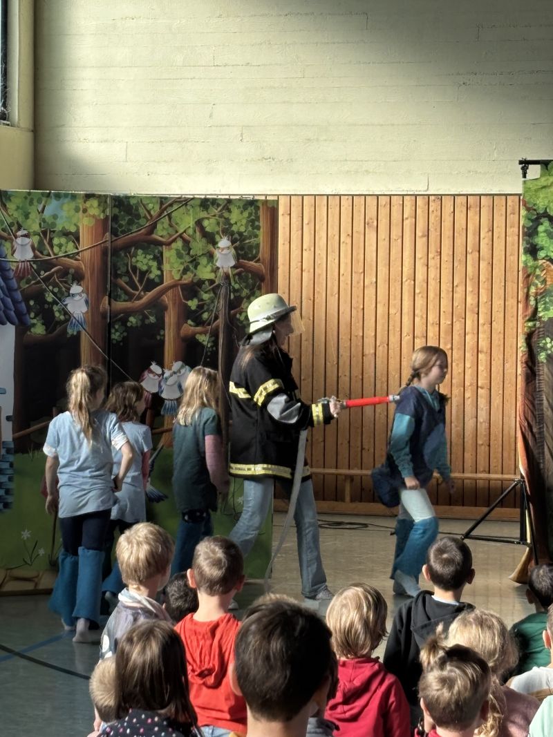 Mit viel Witz, Musik und kleinen Mitmachaktionen wurden die Schülerinnen und Schüler aktiv ins Geschehen einbezogen. Die Kinder lachten, machten eifrig mit und lernten dabei ganz selbstverständlich wichtige Regeln zum Brandschutz. Viele erzählten hinterher begeistert, wie spannend sie das Stück fanden – und dass sie nun genau wüssten, was im Notfall zu tun ist.